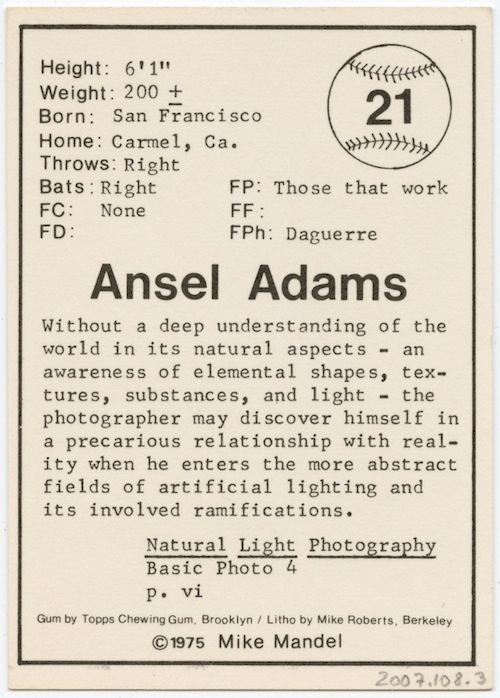 Mike Mandel’s Baseball Photographer Trading Cards. Saw them all at Pier 24.